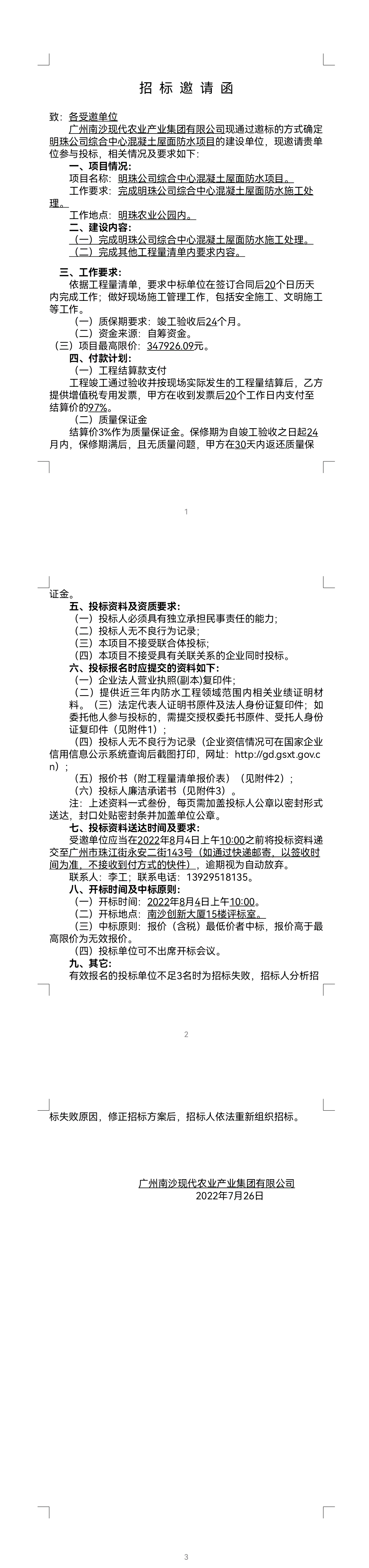 下一篇:廣州市南沙區(qū)集中連片內(nèi)陸?zhàn)B殖魚(yú)塘改造升級(jí)與尾水治理項(xiàng)目(廣州南沙漁業(yè)產(chǎn)業(yè)園有限公司)施工總承包 招標(biāo)公告