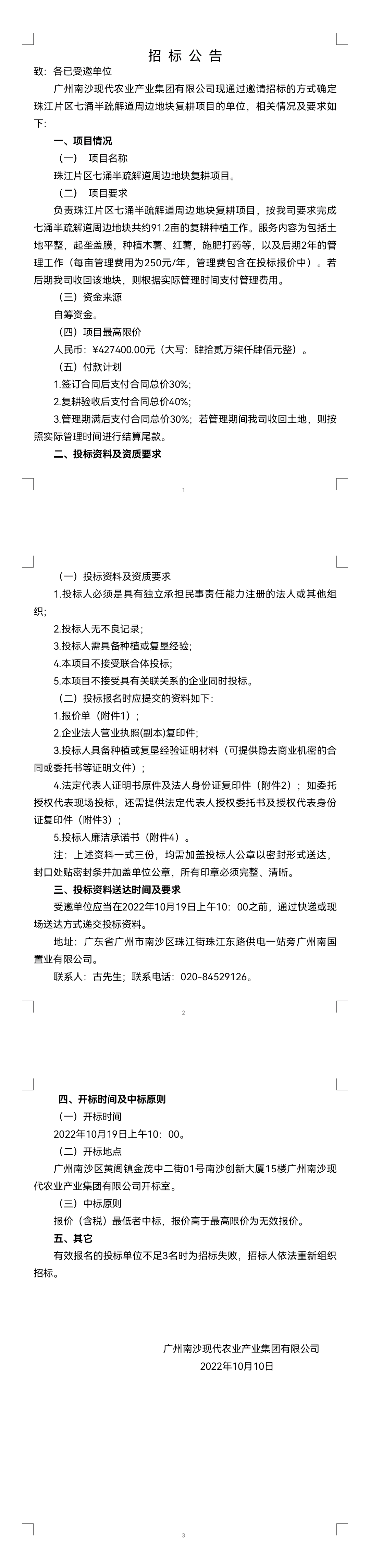 招標公告或招商公告